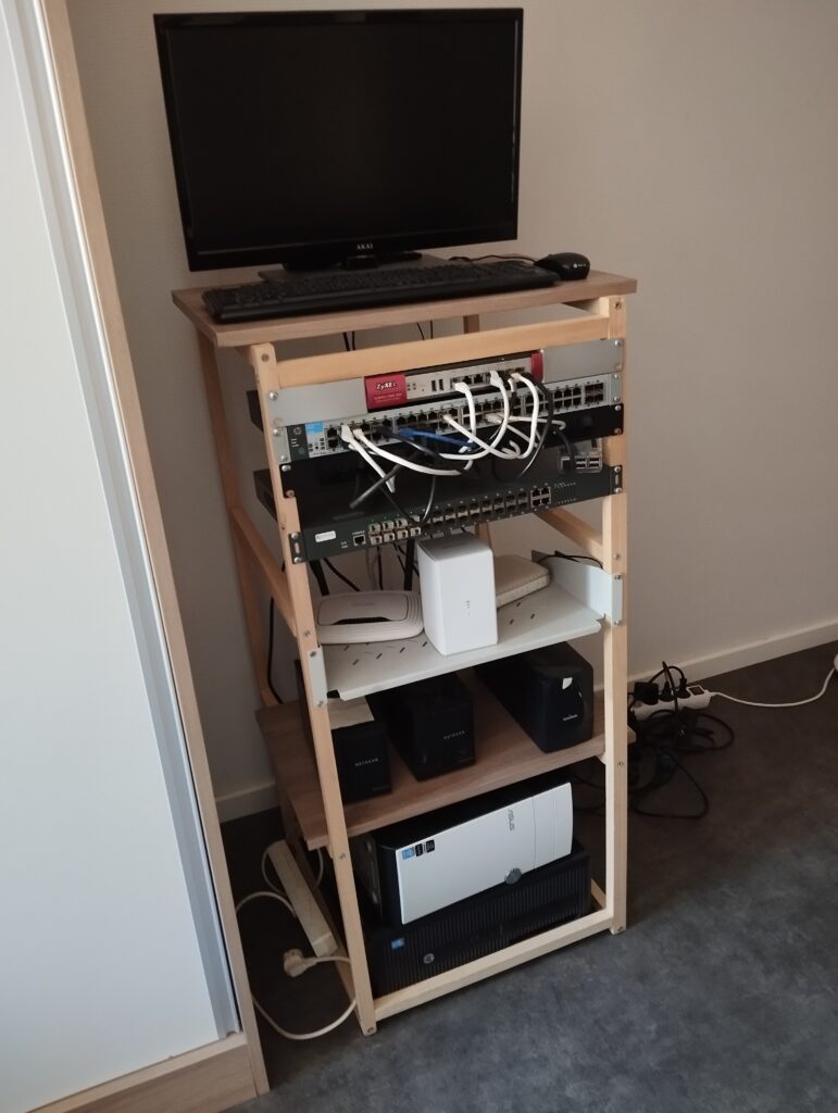 Au cours de mes stages et de mes périodes en alternance, j’ai progressivement récupéré et acheté du matériel pour créer ma propre baie réseau chez moi. Ce projet personnel m’a offert une opportunité unique de mettre en pratique les connaissances acquises, tout en explorant d’autres aspects techniques. Cela m’a également permis de tester des configurations, de résoudre des problèmes concrets et d’approfondir des compétences qui ne sont pas toujours abordées dans un cadre professionnel ou académique. Cette expérience m’a non seulement enrichi sur le plan technique, mais elle a aussi renforcé ma capacité à apprendre de manière autonome.